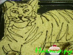 приготовить жидкое бисквитное тесто. на пергаментную бумагу, с помощью ложки, выливаем овалы (для боков). выпекаем при 200 градусов. охлаждаем. из одного овала вырезаем ножом "ложку", остальные разрезаем пополам (если овалы короткие, то просто срезаем один край)