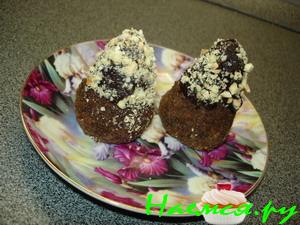 из первой половины сформировать колбаски фаршируя их целым ядром ореха.покрыть растопленным на паровой бане шоколадом.поставить в холодильник.