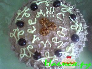 По желанию можно взбить 250гр сливок с сах.пудрой и смазать ими торт.