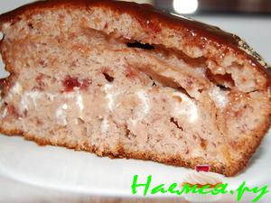 добавляем муку и аккуратно вымешиваем вилкой(не взбиваем миксером или венчиком) чтобы не оседало тесто.