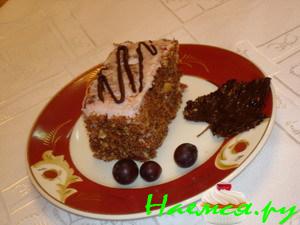 Нарежьте бисквит ромбиками и сложите попарно, делая прослойку из крема. Нанесите сверху крем, обмажьте немного бока, а сверху положите печенье Безе. Бока обсыпьте бисквитной крошкой и украсьте пирожные шоколадной стружкой и мармеладом.