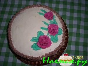 бисквит* Отделяем белки от желтков.Взбиваем желтки с 3 ложками сахара до образования пены.Отдельно взбиваем белки с 4 ложками сахара и ванилином в крепкую пену.Во взбитые желтки добавляем муку осторожненько все вымешивая, сюда же добавляем белки и снова вымешиваем.Должна получится очень нежная масса.Выливаем в форму смазанную маслом.Выпекаем 35 минут.Готовность проверяем деревянной палочкой. Крем* Взбиваем сливки с сахаром в пышную пену.Фруктовое желе разводим 0.5 стакана кипячённой воды,размешиваем до растворения желе,охлаждаем,и тоненькой струйкой вливаем в сливки постоянно взбивая.Ставим на 15 минут в холодильник(чтобы немножко застыло). Охлажденный бисквит разрезаем пополам смазываем кремом,Верх и бока торта также украшаем кремом