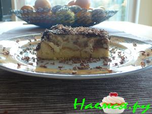 Бисквит разделить на 2 коржа. 2/3 крема выложить на 1 корж, накрыть вторым коржом, сверху распределить оставшийся крем. Поставить на 3 часа в холодильник.