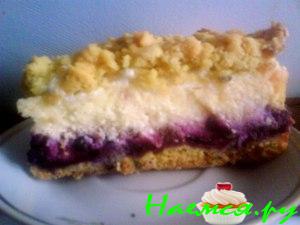 Крем - творог и сметанка с сахаром и измельчить несколько половинок персиков