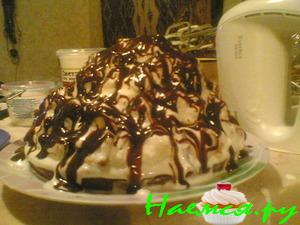 Готовый корж разрезаем пополам. Затем тоже самое проделываем со второй половиной теста