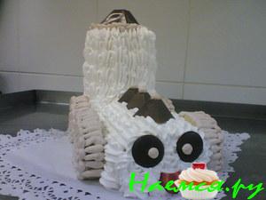 8.На фрукты наносим слой сливок и накрываем вторым коржом (предварительно пропитав его сиропом). 9.Смазываем бока и верх торта сливками и займёмся творчеством, наведём красоту на тортике! Вот что получилось у меня!