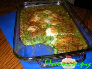 Форму смазать,посыпать сухарями выложить нашу смесь и отправить в духовку 170-180 в добрый час.
