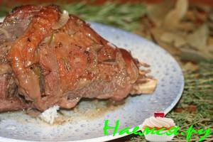 поместить в емкость для запекания и добавив соус.накрыть сверху фольгой и запекать в духовке при 190-200" чуть больше часа.за пять минут до окончания запекания снять фольгу и дать орешкам поджарится.