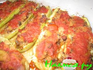 Поджарить оставшиеся кабачки и выложить на томаты. Туда же опять выдавливаем чеснок.