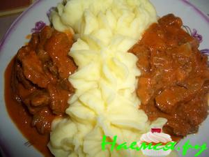Достаем мясо,нарезаем кусочками и укладываем в жаровню.