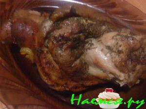 5) Фольгу убираем. Рульки переворачиваем, снова наливаем пиво и еще полчаса держим в духовке уже без фольги. (возможен вариант готовки, когда рульки просто выкладываются на решетку и так запекаются).