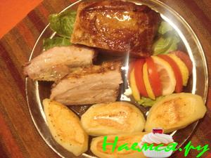 и выпекать, переодически поливая выделившимся соком , в течении 1часа 15 минут.
