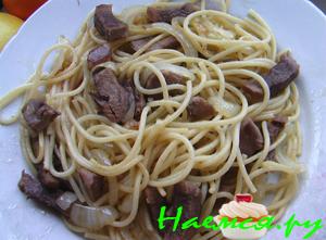 Спагетти с языком, сладким перцем и прованскими травами