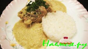 1)разрезать половинку тушки кролика на порционные кусочки.