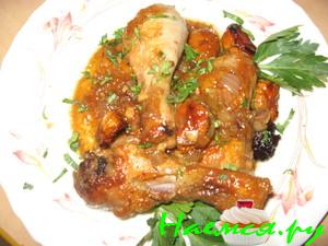 Тушим на маленьком огне в течении часа,время от времени переворачивая куски курицы.