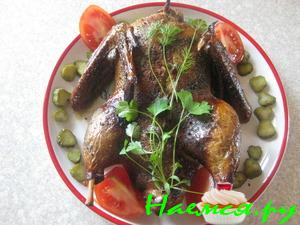 Утку натереть соком лимона и специями, и оставить часиков на 5-6 мариноваться (можно и больше).