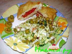 Помидор ошпарить, снять кожицу и мелко порезать, удалив косточки, подсолить.