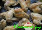 Выложить на противень, смазанный маслом и посыпанный мукой, в один слой, обильно смазать каждый кусочек сверху кляром взбрызнуть растопленным сливочным маслом, поставить в разогретую до 200* духовку на 15-20 минут. В конце запекания смазать поверхность крылышек растопленным сливочным маслом, смешанным со щепоткой приправы карри.