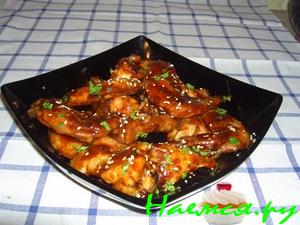 Куриные крылышки в соусе и с картошечкой фри...