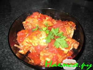 Томатный сок смешать с рубленной зеленью. По желанию можно еще поперчить и полить этим соусом курицу!
