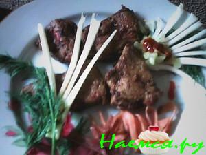 1. берём печень, нарезаем её на куски толщиной не больше 3-4 мм