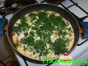 Курица в лимонно-сметанном соусе с рулетами из кабачков