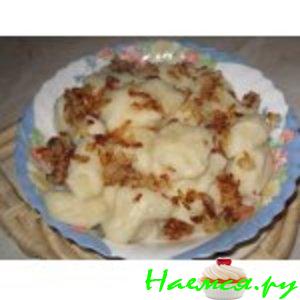 Ленивые вареники или галушки в сливочно-грибном соусе