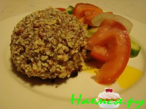 Кусочки курицы посолить, посыпать перцем и щедро намазать ореховой пастой. Обжарить в арахисовом (или любом другом) масле до румяной аппетитной корочки.Промокнуть лишний жир бумажным полотенцем или салфеткой.