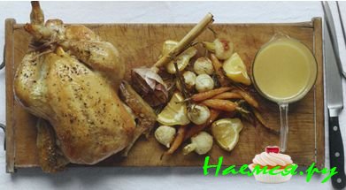 ► Говядину нарежьте тонкими ломтиками. Подавайте с подливкой, йоркширским пудингом, тушеной капустой, глазированной морковью и жареным картофелем.