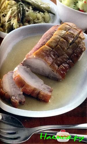 Подавайте блюдо с тушеной красной капустой, картофелем фри и маринованными сливами.
