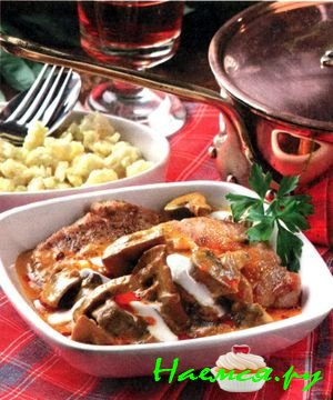 Нарежьте вырезку на 8 ломтиков, отбейте. Ломтики грибов, приправленные молотым черным перцем, потушите на сливочном масле до полного испарения жидкости. Затем выложите на доску 4 ломтика вырезки и поместите на середину грибы, оставляя по краям по 1 см, края смажьте яичным белком. Накройте грибы оставшимися 4 ломтиками мяса, края прижмите пальцами. Обжарьте фаршированные ломтики мяса с двух сторон на сковороде или на гриле. Подавайте блюдо с картофельным пюре либо горчицей или кетчупом.