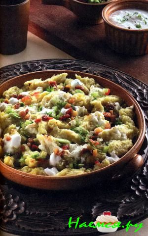Приготовьте тесто из муки и яиц, тонко раскатайте. Когда оно немного подсохнет, порвите его на кусочки (листочки). Отварите лапшу в кипящей воде, добавьте в воду немного растительного масла, чтобы лапша не слиплась. Когда лапша будет готова, слейте воду, тесто ополосните теплой водой. Поместите готовую лапшу на горячий жир или растительное масло, тщательно перемешайте и нагрейте. Выложите готовую лапшу на нагретое блюдо, присыпьте творогом и облейте чуть теплой сметаной, затем добавьте обжаренные кубики сала, сверху можете полить вытопленным жиром от сала. Очень важно делать все быстро, чтобы не дать холодному творогу остудить горячую лапшу.
