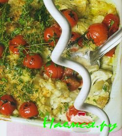 4. Выньте из духовки и досыпьте немного рубленой петрушки. Переложите на тарелки и украсьте оставшейся петрушкой.