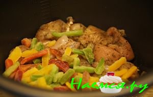 - Соблюдая послойность необходимо выложить компоненты в огнеупорную форму для выпекания: