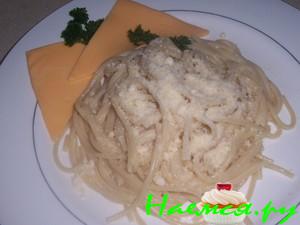 4. смешать горячие спагетти с 1/3 соуса