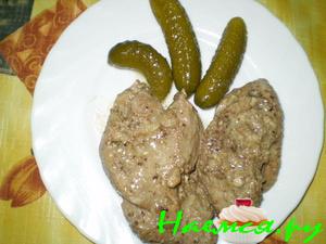 режем мясо порционными кусками,отбиваем с двух сторон,солим,перчим.