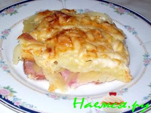 Картофельная запеканка с копчёным окороком (без майонеза)