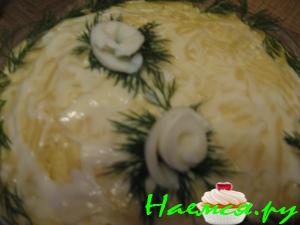 капусту мелко нашинковать(третий слой),картофель порезать четвертинками(четвертый слой).
