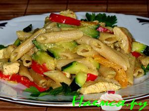 Хорошенько nеремешать,дать немного постоять,чтобы вермишель пропиталась запахами и достигла температуры овощей с мясом