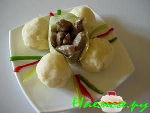 4. Мясо переложить в полученную массу, хорошо перемешать, добавить соль, перец, приправу и порезанный укроп.