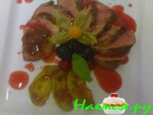 Филе замариновать в соевом соусе и лимонном соке часа на 2.Со стороны кожицы сделать косые надрезы.Выложить на сухую прогретую сковороду кожей вниз,обжарить и перевернуть,Обжарить,залить вином и закрыть крышкой.Потушить минут 30.Посыпать базиликом и свежесмолотым черным перцем.