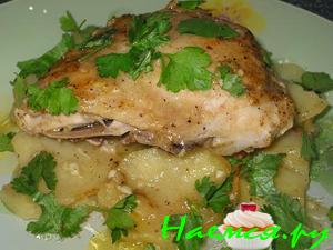 2.Картошку порезать небольшими кусочками и пожарить как обычно на сковороде .Когда будет готова бросить туда мелко порезанный чеснок.