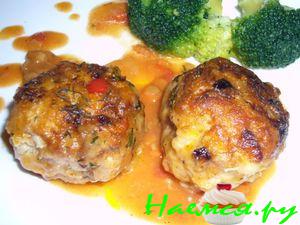 Мокрыми руками сформировать котлетки, обмакнуть их в кукурузной муке и обжарить до золотистой корочки на горячей сковороде, после- добавить в сковороду немного подсоленного кипятка, перец горошек, разрезанную пополам дольку чеснока, накрыть крышкой и дать немного протушится.