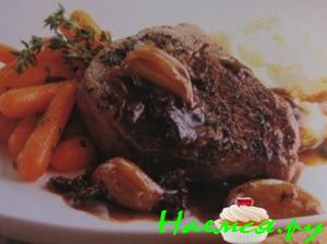 -снизить температуру,добавить в получившуюся смесь обжаренные отбивные