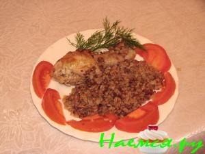 Поставить противень в нагретую до 220 гр. духовку - через 30 минут (все покрылось чудесной корочкой) - блюдо готово.