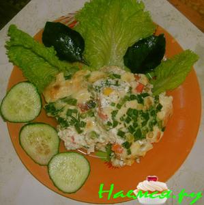 Омлет с овощной смесью и вареной колбасой
