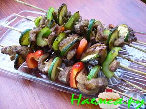 Сначала задумывала только рыбные шашлычки, но заглянув закрома, решила побаловать домашних и мяском, а овощи как-то само собой присоединились.