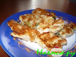 Выкладываем на сковородку ложкой в форме оладий. Обжариваем с двух сторон, по времени как котлеты.