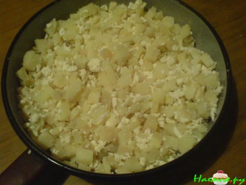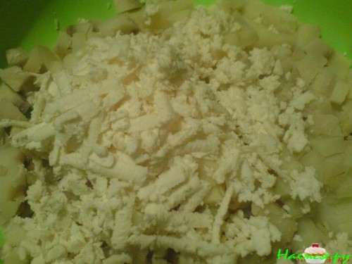 Брынзу натереть на тёрке и смешать с картофелем, посолить, если того душа просит.