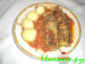 Для начинки: мякоть цуккини измельчить, смешать с мясным фаршем, посолить и поперчить по вкусу.